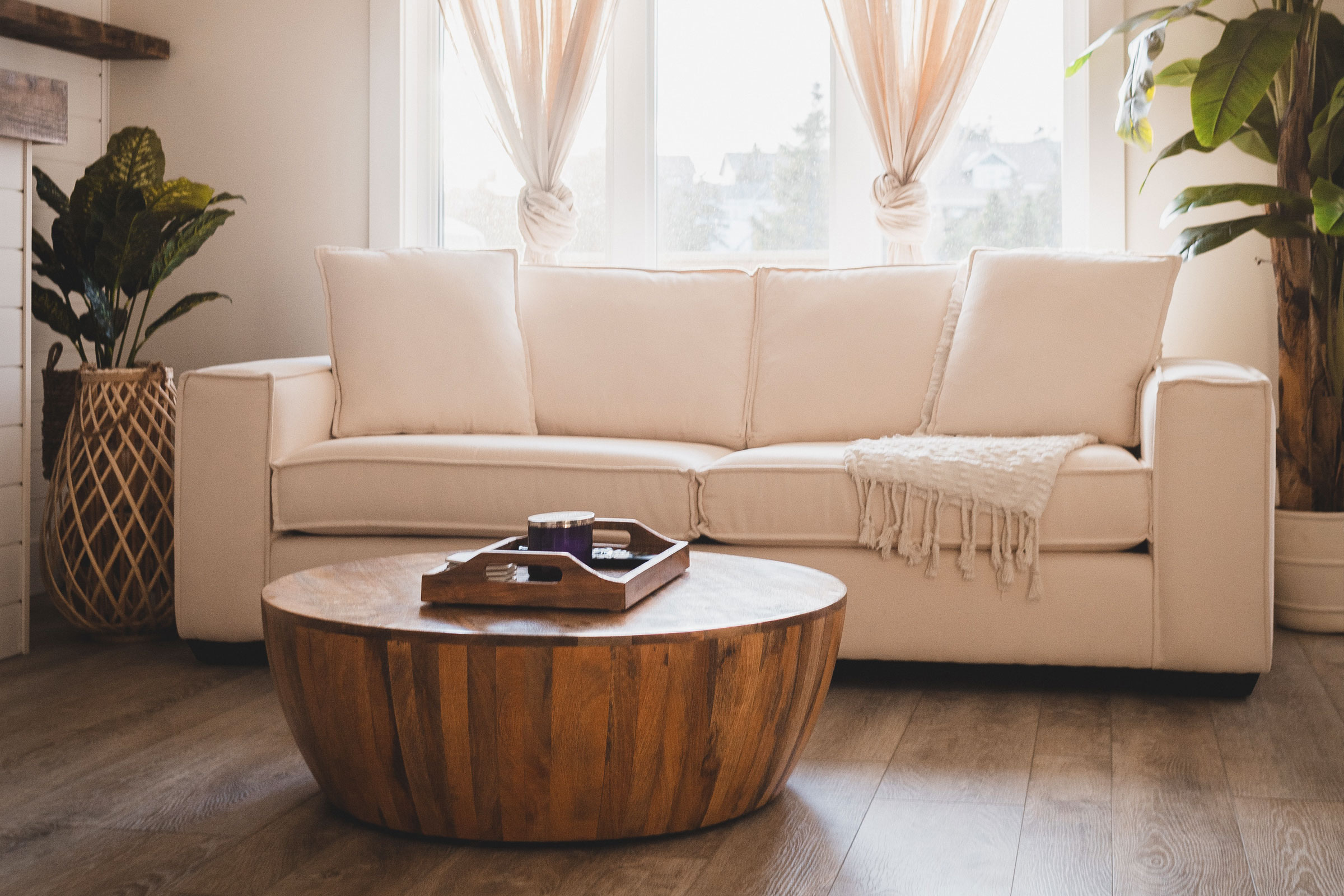 Unser Tipp: Kombinieren Sie helle Hölzer mit Dekoration aus der Natur, das können Äste aus dem Wald oder auch ein Stück Treibholz sein. Felle und Kerzen ergänzen das Wohlfühl-Ambiente perfekt – vor allem in der kalten Jahreszeit. Wohnaccessoires aus Leinen, Rattan, Wolle und Jute in Kombination mit Sukkulenten, Kakteen oder Gräsern sorgen für ein cooles Boho-Feeling.