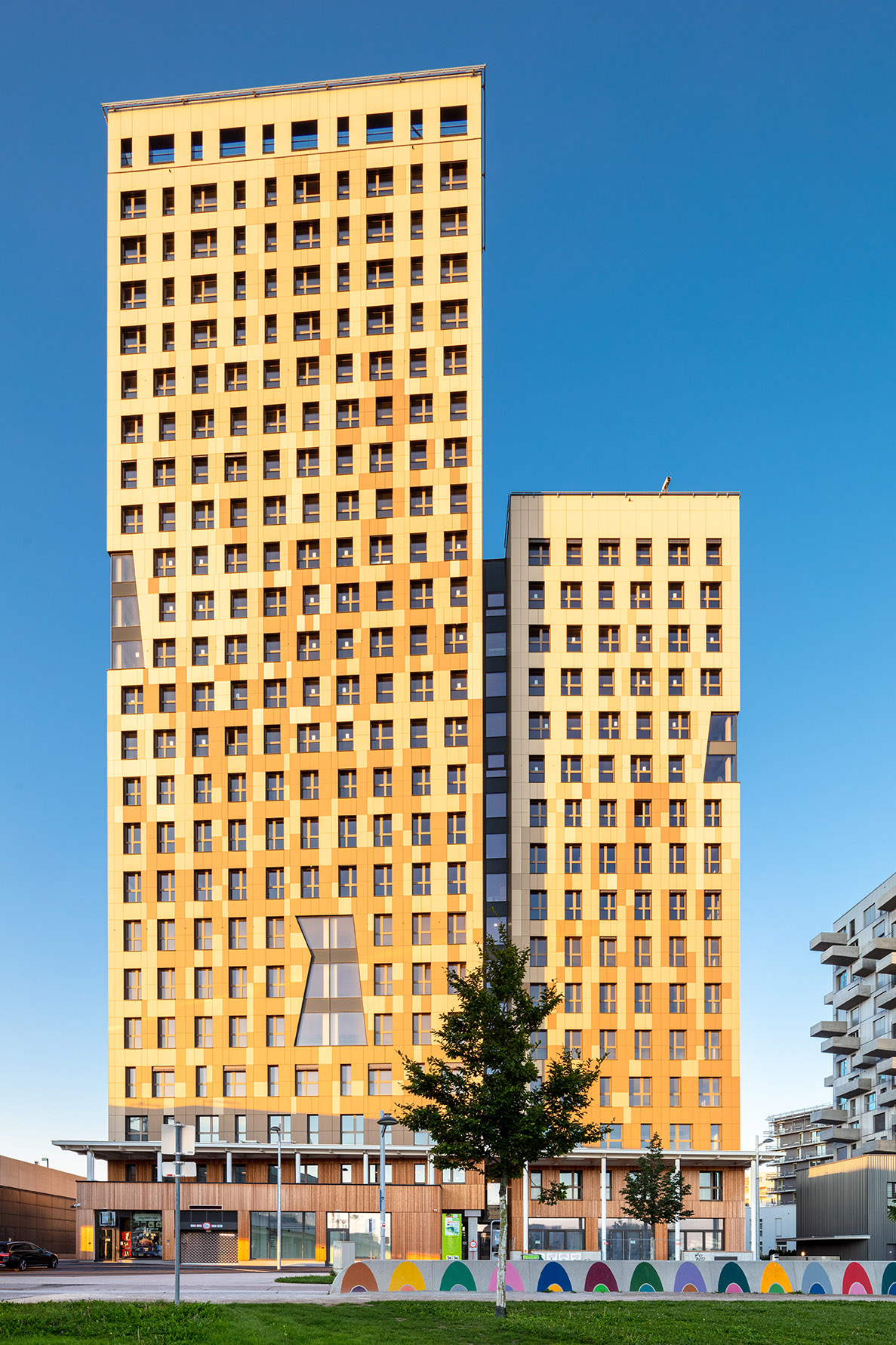 In Norwegen steht das höchste Holzgebäude der Welt. Das 18-stöckige Gebäude ist 85 Meter hoch und hat sowohl eine Struktur als auch eine Fassade aus Holz. Das Tragwerk besteht aus einer Brettschichtholzsäule, Balken und Diagonalbalken. Der Boden wurde mit einer Furnierholzschicht gestärkt. Zehn Stockwerke sind aus vorgefertigten Holzelementen zusammengesetzt, der obere Teil wird durch Beton stabilisiert. Das Gebäude fügt sich optisch nahtlos in seine natürliche Umgebung am Mjøsa, dem größten See Norwegens, ein. Es beherbergt Apartments, ein Hotel, Büros, Restaurants, diverse Gemeinschaftsflächen und eine Schwimmhalle.
