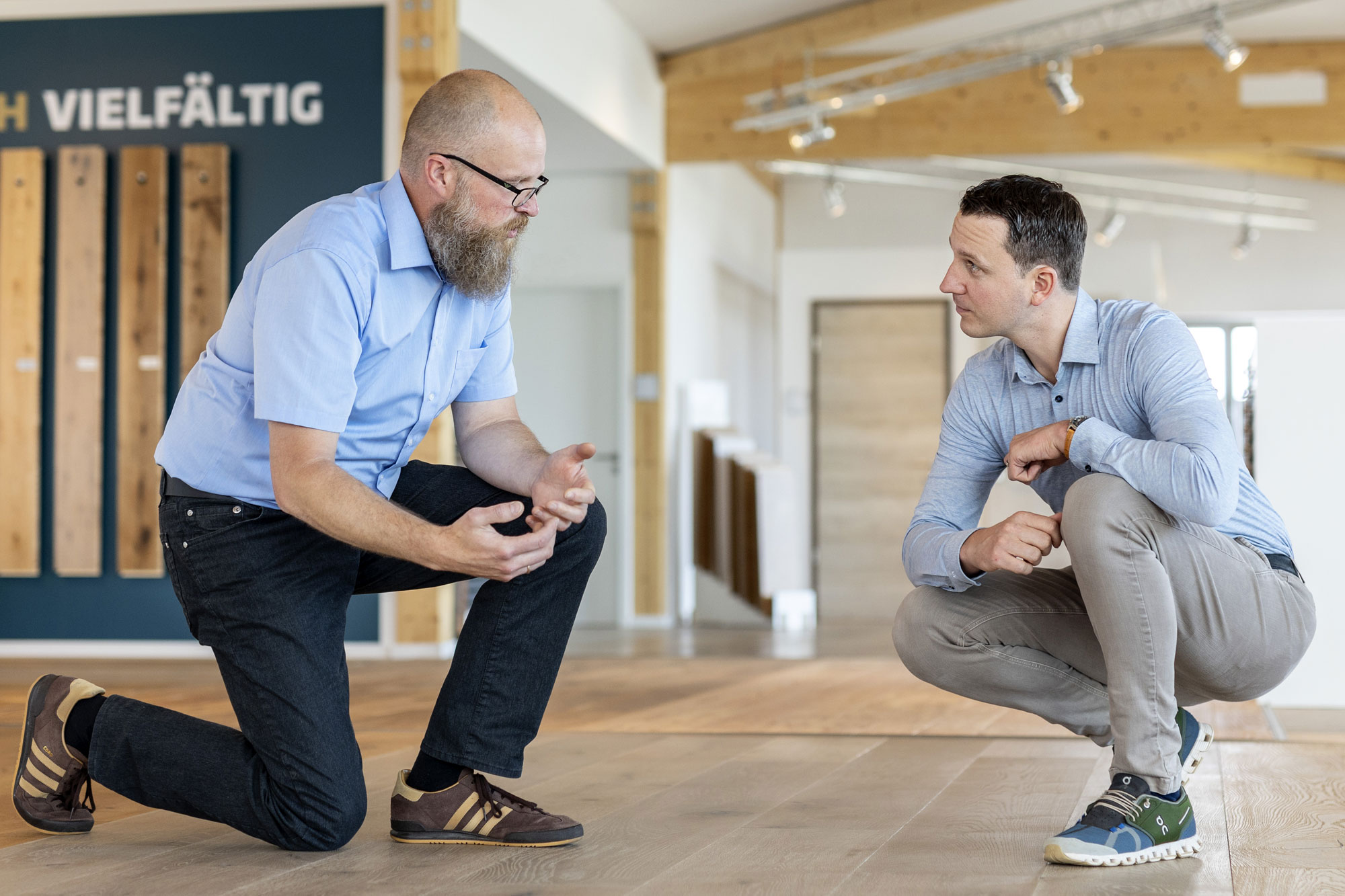 Von Mensch zu Mensch und immer mit dem richtigen Gespür für Ihre Wünsche. Wir sind erst dann zufrieden, wenn Ihr persönlicher Parketttraum erfüllt ist – und das gelingt uns garantiert. Lassen Sie sich in der hellen Ausstellung von Eifelparkett in Kall inspirieren und fachkundig beraten.